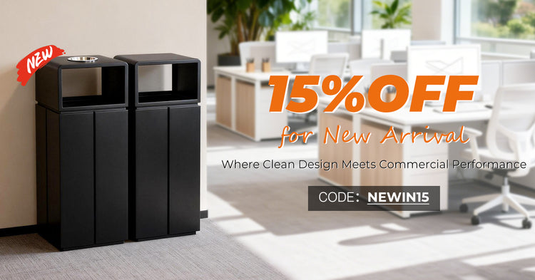 10 Gallon Black Modern Minimalist Style Commercial Trash Can with Ashtray