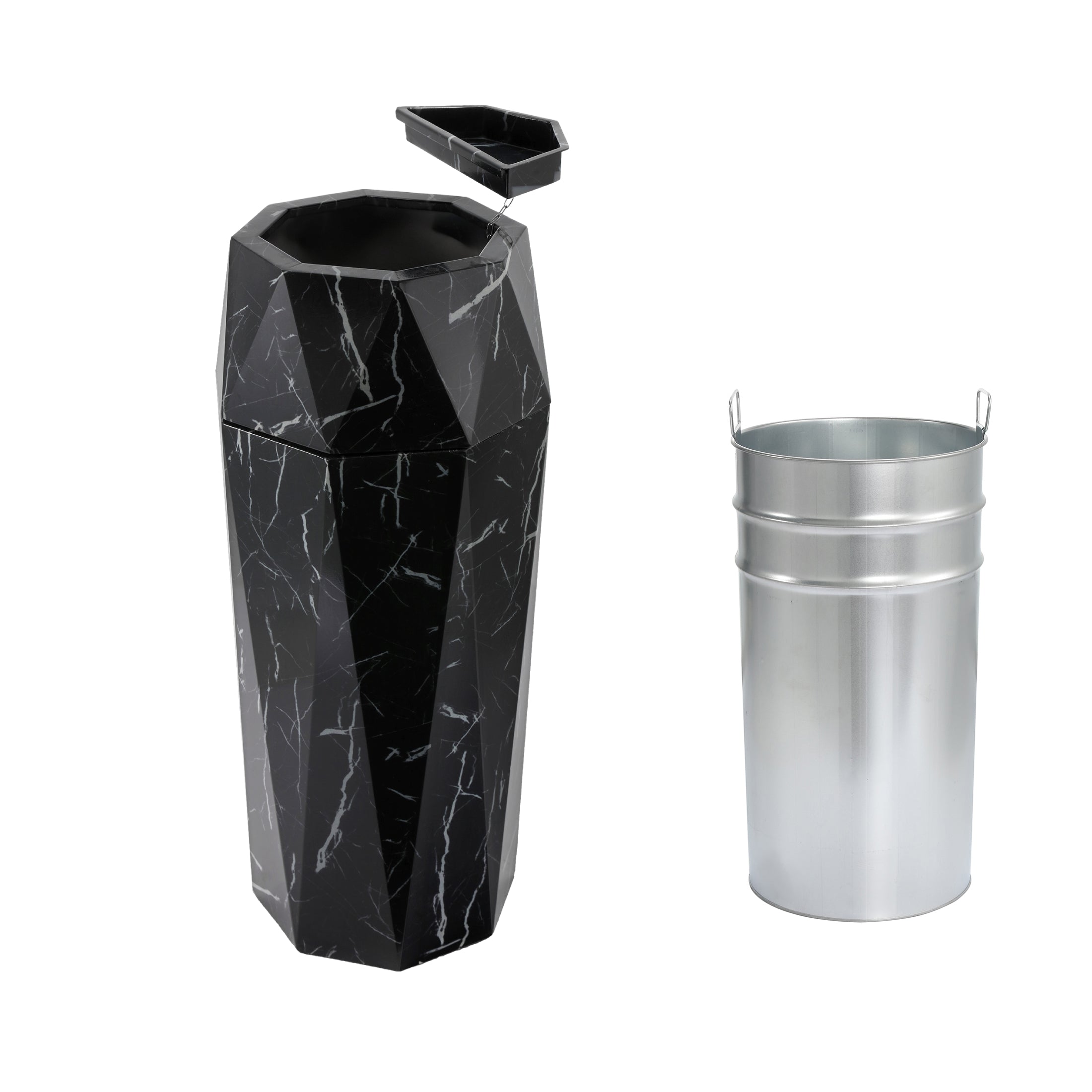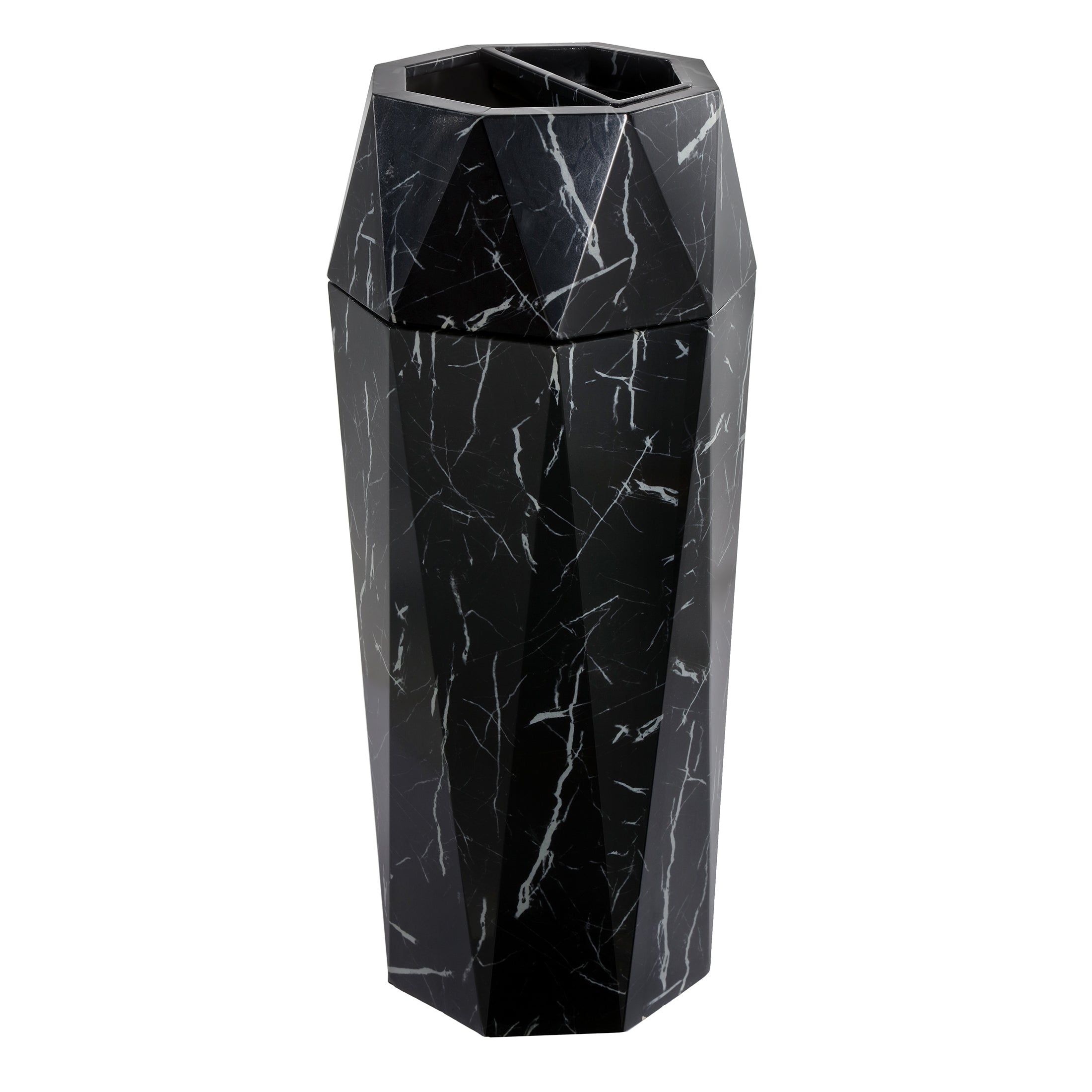 Stylish Design: European diamond style outdoor garbage can with lid, the top angular design and the bottom surface is glazed marble painting treated, waterproof, anti-corrosion, anti-fingerprint and non-slip design, functional yet modern, advanced and stylish.