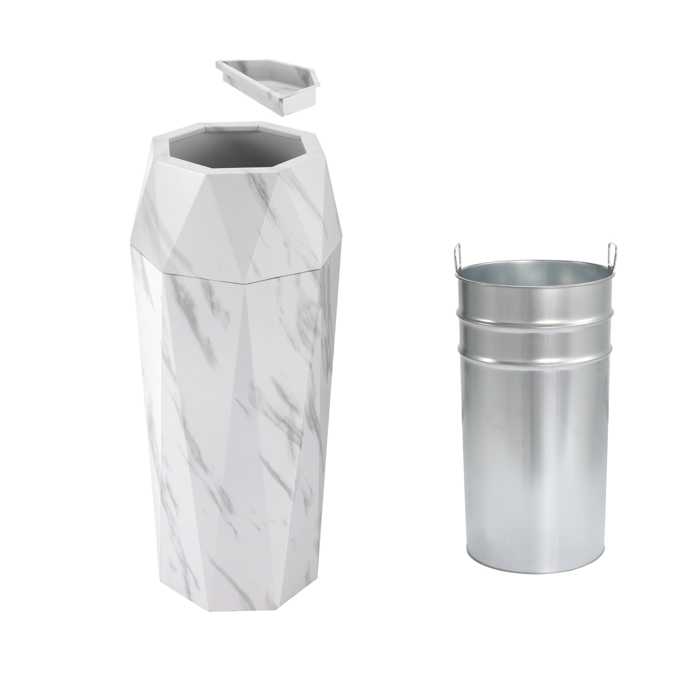 Stylish Design: European diamond style outdoor garbage can with lid, the top angular design and the bottom surface is glazed marble painting treated, waterproof, anti-corrosion, anti-fingerprint and non-slip design, functional yet modern, advanced and stylish.