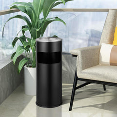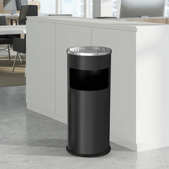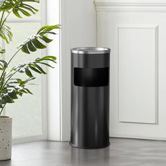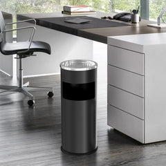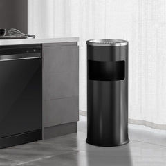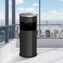 30L/8 Gallon Black Stainless Steel Office Trash Can with Ashtray